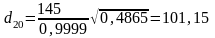 Внутренний диаметр трубопровода перед СУ при t=200C , Д20=145,0мм
