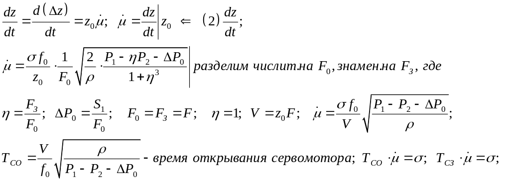 Уравнение сервомотора включает величину, относящееся к золотнику σ, .