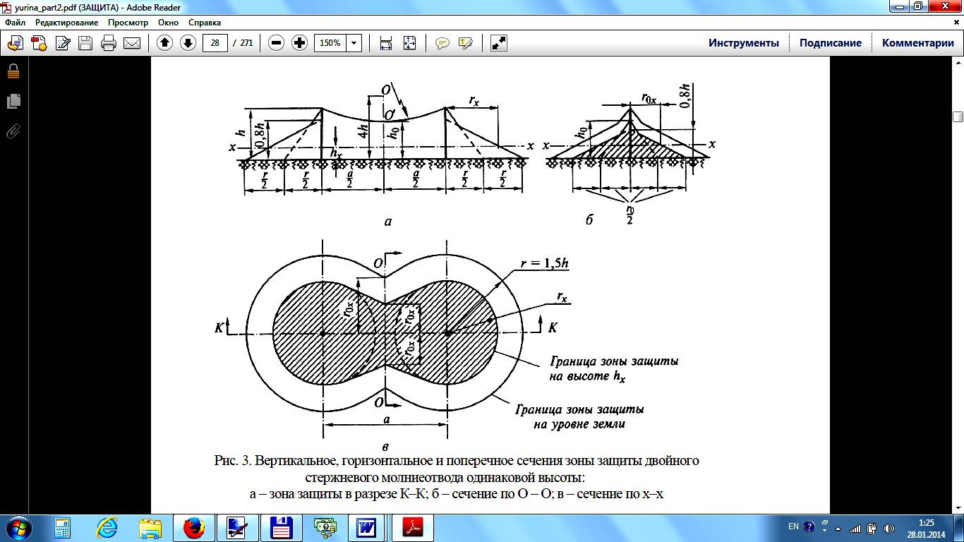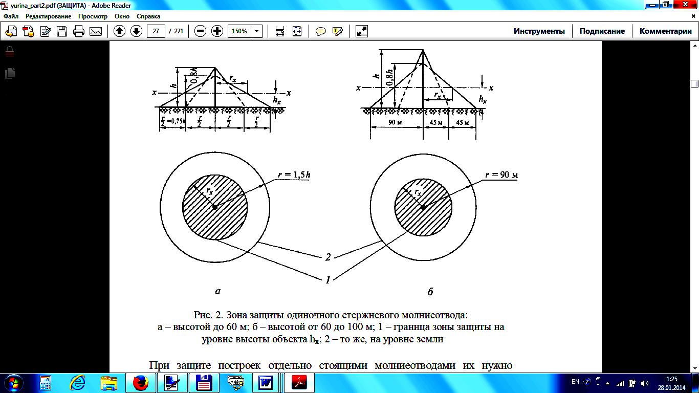 Тросовый, или антенный, молниеприемник (рис. 3) в виде проводника, натянутого между двумя опорами, устанавливают непосредственно над возводимым зданием (сооружением) или на спепиатьно построенных мачтах. Для установки таких молниеотводов можно использовать все высокие сооружения (промышленные дымовые и другие трубы, башни и т.п.). находящиеся на территории стр.площадки.( закон}' Ома устремится к проводникам с менышим сопротивлением.С приближением грозы на всех стр.площадках. кранах жскаваторах и других строительных машинах все работы д.б. прекращены, а рабочие, откл. приемники тока, обязаны укрыться в помещениях, имеющих средства молннезашиты.