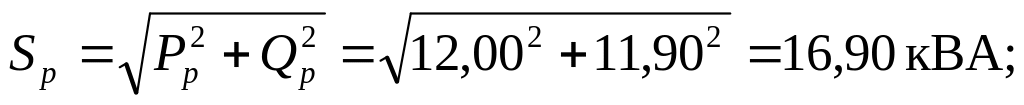 Определим расчетные активные и реактивные, полные мощности и расчетные токи (12, 13, 14, 15 столбцы):