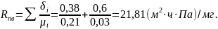 Сопротивление паропроницанию рассчитываемой конструкции стены в пределах от её внутренней поверхности до плоскости возможной конденсации составляет: