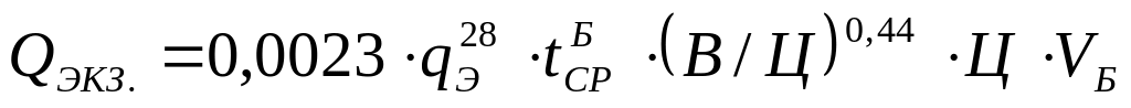 где qЭ28=300 – теплота гидротации цемента при его твердении в нормальных условиях в течении 28 суток (принимается равной марке цемента), кДж/кг;