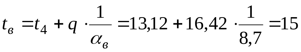 где αв – коэффициент теплоотдачи внутренней поверхности, выбираем по табл.5.4[1], αв=8,7 Вт/(м2∙°С);