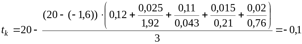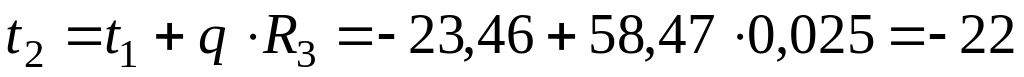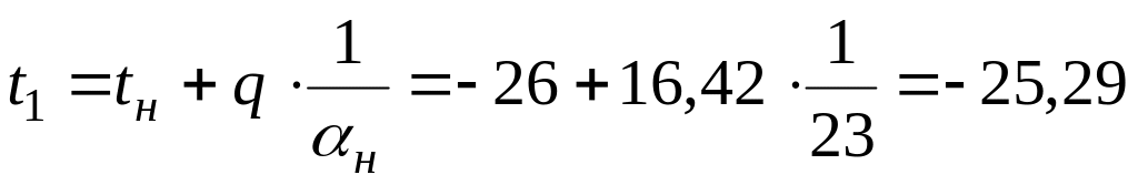 Определим температуры на границах слоев многослойной конструкции при: tв = 20 °С, tн = -26 °С.