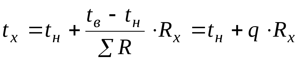 Rx - часть термического сопротивления, находящегося между плоскостями c температурами t1 и tx, (м2 ∙ ºС)/Вт.