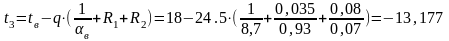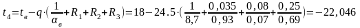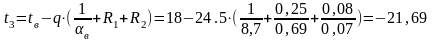 Определяем температуры на границах слоев конструкции по формуле: