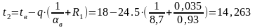 Определим тепловой поток через трехслойную конструкцию при разности температур двух сред: