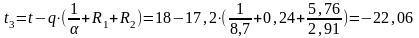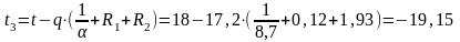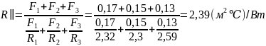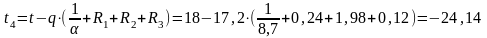 Определим тепловой поток через трехслойную конструкцию при разности температур двух сред: