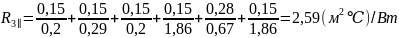 Для определения тепловой инерции стены находим термическое сопротивление отдельных слоев конструкции по формуле: