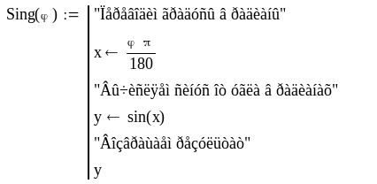 Ниже приведен пример программы-функции и вызов ее из документа Mathcad.