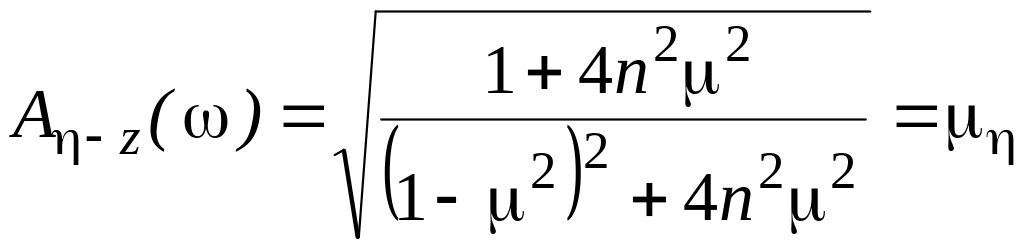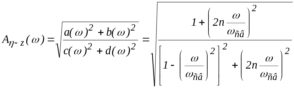 Для примера рассмотрим преобразование выражения ЧХ динамической модели с одной степенью свободы (формула 6.14). Для этого введем два параметра, характеризующие колебательные свойства рассматриваемой системы, а именно – собственную частоту недемпфированной системы (гл.4, формула 4.2) и относительный коэффициент затухания n (гл.4, формула 4.7).