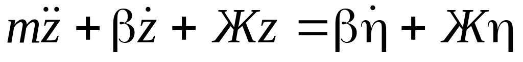 Полученное уравнение представляет собой уравнение вертикальных колебаний модели (колебаний подпрыгивания) с одной степенью свободы, левая часть которого это собственные колебания, а правая – вынужденные (т.к. правая часть – сила от кинематического возмущения).