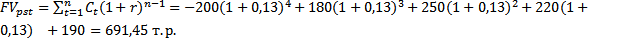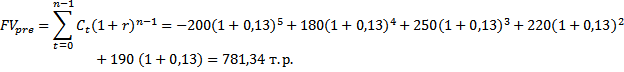 FVpst=FVpre*(1+r)=691,45*(1+0,13)=781,34 т.р.