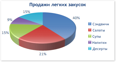 Данные в одном столбце или строке листа можно представить в виде круговой диаграммы. Круговая диаграмма демонстрирует размер элементов одного ряда данных относительно суммы элементов. Точки данных на круговой диаграмме выводятся как проценты от всего круга (рисунок11)