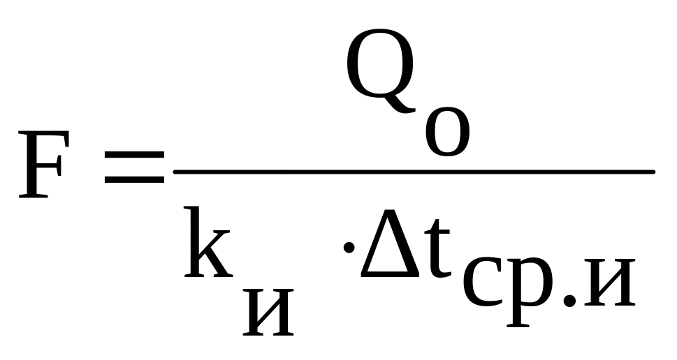 где Qо − расход холода, Вт, определяется по уравнению (55); kи − коэффициент теплопередачи воздухоохладителей, Вт/(м2·К), в поверочных расчетах принимают kи = 300…400 Вт/(м2∙К); Δtср.и − средняя разность температур между теплоносителями в испарителе, ºС.