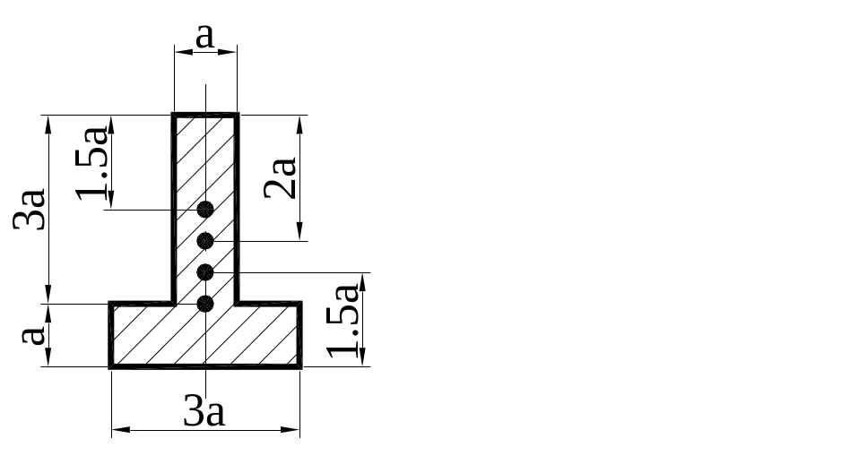 В какой точке расположен центр изгиба (центр инерции) однородной балки с поперечным сечением, показанным на рисунке?