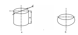 Образцы, применяемые при испытании, изготавливаются в виде цилиндра с отношением высоты h к диаметру d равным 1…2 (т.е. h = d…2d), (рис. 2.2а), торцы образца должны быть перпендикуляры его оси.