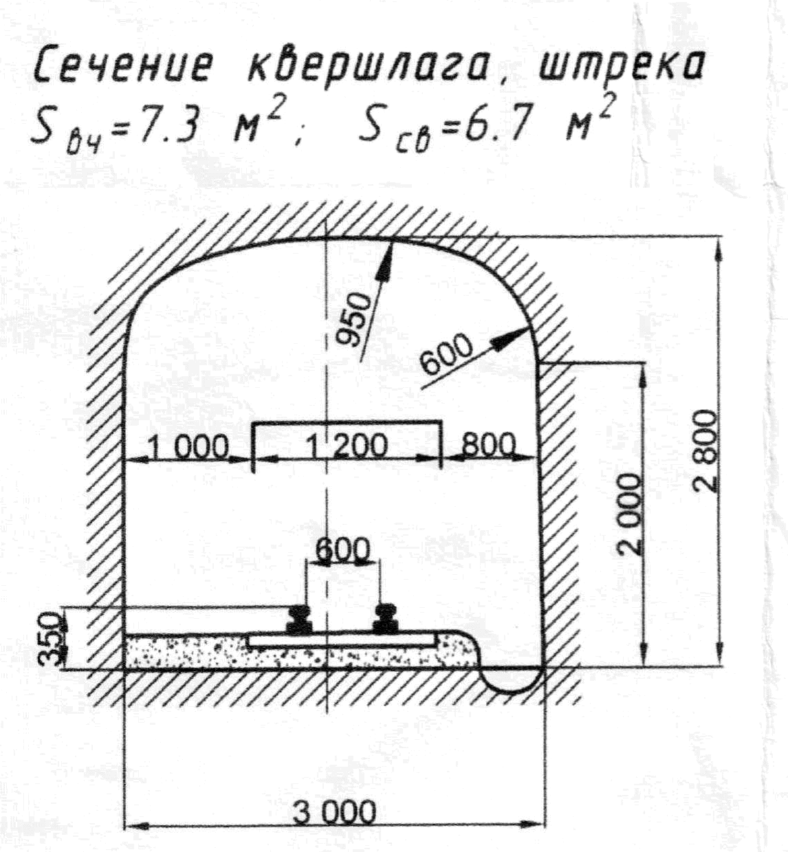 Рис. 6.5. Сечение штреков и квершлагов на шх. «Северная»