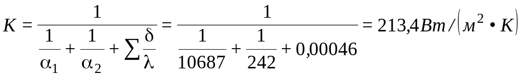 Сумма термических сопротивлений стенки трубы из нержавеющей стали и загрязненной со стороны смеси и пара: