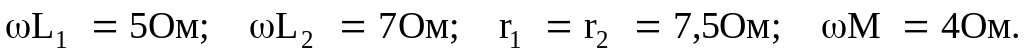 2. Заданы собственные индуктивности и коэффициент связи двух катушек: L1 = 0,1 Г, L2 = 0,1 Г, κ = 0,8. Определить взаимную индуктивность М.