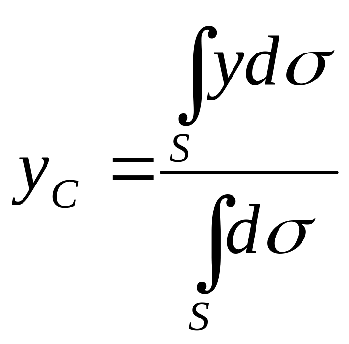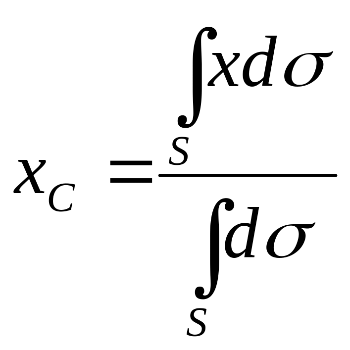 Если твердое тело представляет собой однородную поверхность, то координаты центра тяжести в выбранной системе отсчета определяются следующим образом: