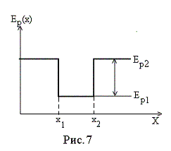 Потенциальным “ящиком” называют потенциальную яму с вертикальными стенками (рис. 7). Область пространства с координатами от x1 до x2 на рис. 7 и есть потенциальный “ящик”. В реальной действительности такая ситуация наблюдается, например, для электронов в металле: внутри металла они свободны, но чтобы покинуть металл, электроны должны совершить работу выхода Авых, равную