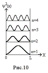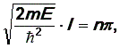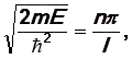 где n = 1, 2, 3 , … . Значение n = 0 лишено физического смысла, так как слева в уравнении (29) ни одна величина не равна нулю. Таким образом, мы пришли к выводу: решение уравнения Шрёдингера имеет физический смысл не при любых значениях энергии, а только при таких, когда выполняется условие (29), т.е. при