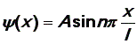 Математически задача решена, но физического содержания решение еще не получило. Необходимо, во-первых, определить две произвольные постоянные А и 0. Значение 0 находим сразу из первого граничного условия: (0) = 0, откуда 0 = 0. Величину А найдем из условия нормировки, но сделаем это позднее. Осталось неиспользованным второе граничное условие (l) = 0. Это возможно, если аргумент у синуса кратен :