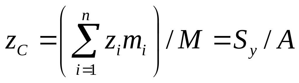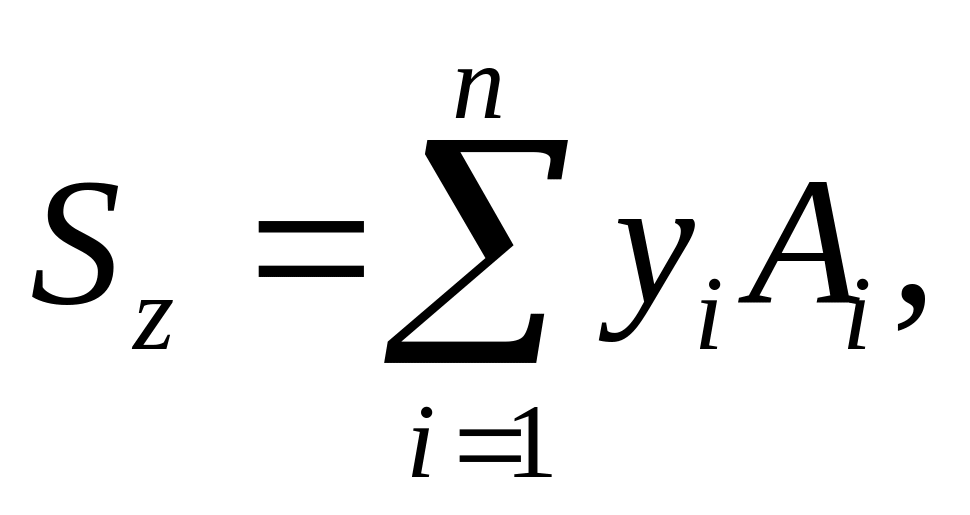 где n — число элементарных площадок сечения; Ai — площадь элементарной i-й площадки сечения, расположенной на расстоянии yi , от оси OZ.