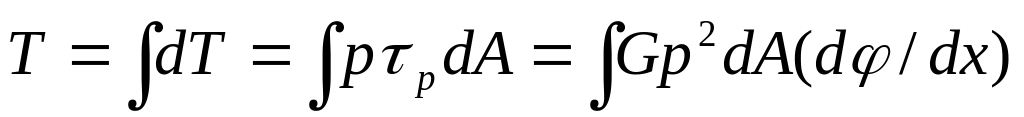 Деформация при кручении стержней определяется углом поворота поперечных сечений относительно начального положения. Воспользуемся формулой для выражения угла поворота сечения скручиваемого стержня на участке длиной :