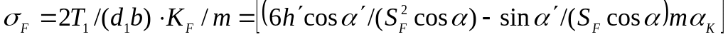 Условие прочности зуба по контактным напряжениям с учетом принятых замен имеет следующий вид: