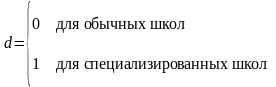 Тогда если строить различные модели для каждого типа школ, то спецификацию моделей можно записать в виде: