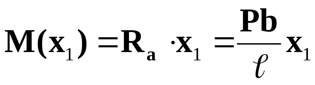 Сила Р розділяє прольот балки на дві ділянки. Для лівої ділянки при 0≤х1≤а маємо