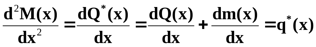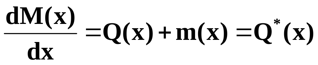 Запишемо, що Q*(x) – перша похідна від М(х). Взагалі між М(х), Q*(x) і q*(x) існують диференціальні і інтегральні залежності.
