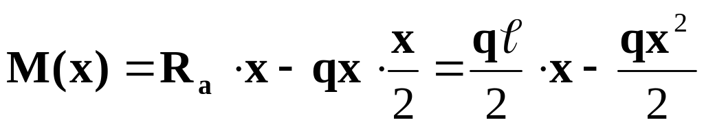 Для 0≤х≤ℓ обчислимо згинаючий момент і поперечну силу