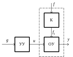 и установившееся значение переменной выхода будет в точности равно заданию. Необходимо только, чтобы коэффициент усиления устройства управления был равен величине, обратно пропорциональной коэффициенту усиления объекта по каналу управления.