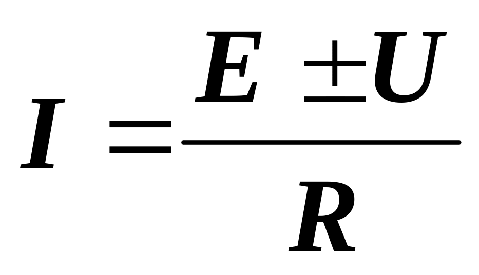 в) узагальнений закон Ома (рис.1.1,в) для ділянки кола (знак «–» у разі зміни напрямку напруги):