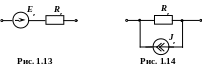 Виходячи з виразів (1.19), (1.20) і (1.21), можна зробити висновок, що послідовне з’єднання ідеального джерела ЕРС й опору (рис. 1.13) можна замінити паралельним з’єднанням ідеального джерела струму й опору (рис. 1.14) і навпаки, причому: