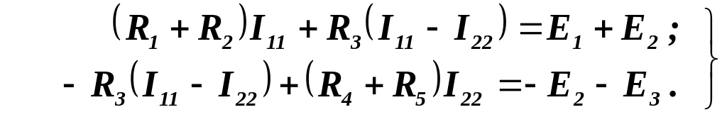 Ці ЕРС рівні відповідно алгебраїчній сумі ЕРС кожного контуру, причому, зі знаком «+» («–») входять ті ЕРС, напрямки яких співпадають (не співпадають) з напрямком обходу контуру.