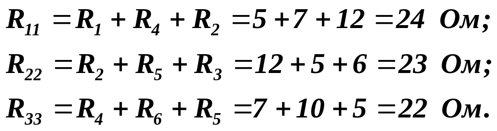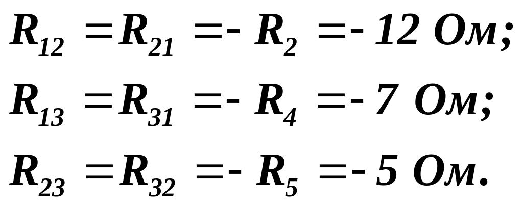 Опори суміжних віток будуть від’ємними, оскільки контурні струми через них протікають у взаємно протилежних напрямках: