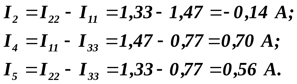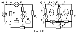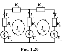 Якщо в результаті розв’язку системи рівнянь (1.25, а) якийсь контурний струм виявиться від’ємним, то це буде означати, що його справжній напрямок є протилежним тому напрямку, який ми вибрали за додатний.