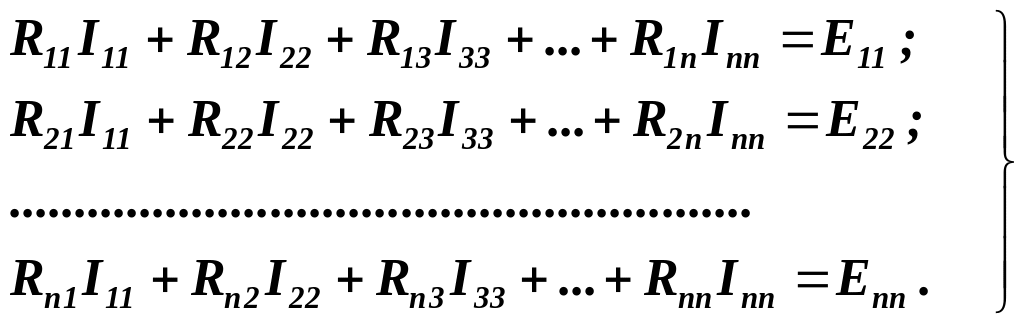 Для схеми електричного кола, що має «п» незалежних контурів, система контурних рівнянь має вигляд: