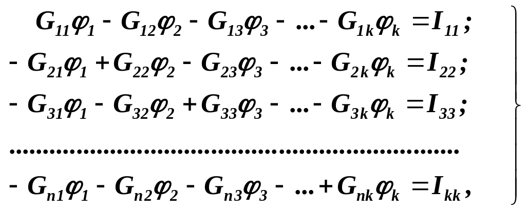– вузловий струм k–го вузла, розрахункова величина якого визначається з виразу: