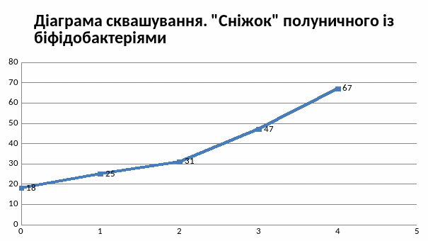 Динаміка сквашування кисломолочного напою «Сніжок» полуничний із біфідобактеріями