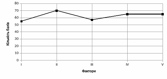 На другому знаходиться місці фактор II (прив’язаність) 48; На третьому місці розташувався фактор III (самоконтроль) 67; Результати представлені Рис. 2.29.