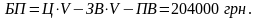 Для визначення обсягу виробництва (реалізації) продукції (Vв-ва), що забезпечує певну заплановану суму прибутку (БП), формула має вид:
