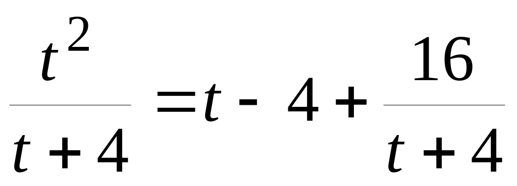 Под знаком интеграла получилась рациональная дробь, которая может быть правильной, если степень многочлена, стоящего в числителе меньше, чем степень знаменателя. Если же степень числителя больше или равна степени знаменателя, то дробь называется неправильной. В данном случае дробь неправильная. У любой неправильной дроби, так же, как это было и в числах, можно выделить целую часть путем деления уголком многочлена, стоящего в числителе на многочлен, стоящий в знаменателе, или искусственно выделяя в числителе такое же выражение, что и в знаменателе. Это необходимо делать для сведения интеграла к табличным, которые содержат только правильные дроби.