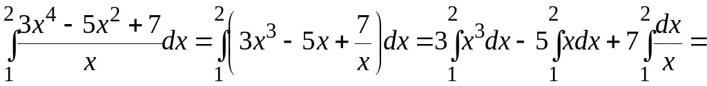 Решение. а) Используя эквивалентное преобразование подынтегральной функции (почленного деления числителя на знаменатель) и свойств определенного интеграла, получаем: