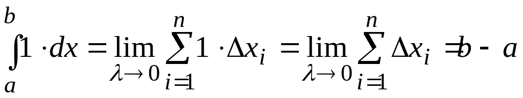 - •40. Определенный интеграл от функции тождественно равной единице, равен длине отрезка интегрирования:
