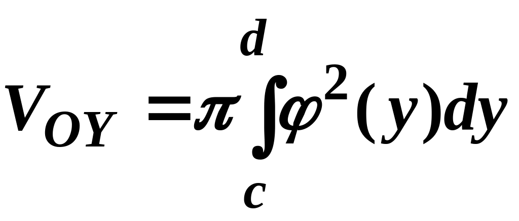 Формально заменяя в формуле (8.8) переменную x на y, получаем формулу для вычисления объема VOY тела, полученного от вращения криволинейной трапеции (рисунок 27) вокруг оси ординат: